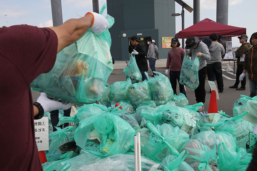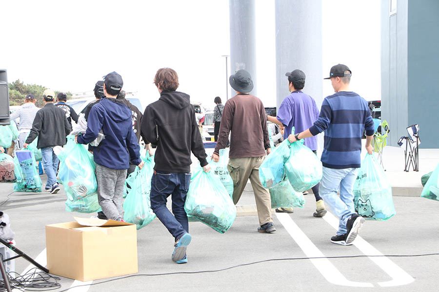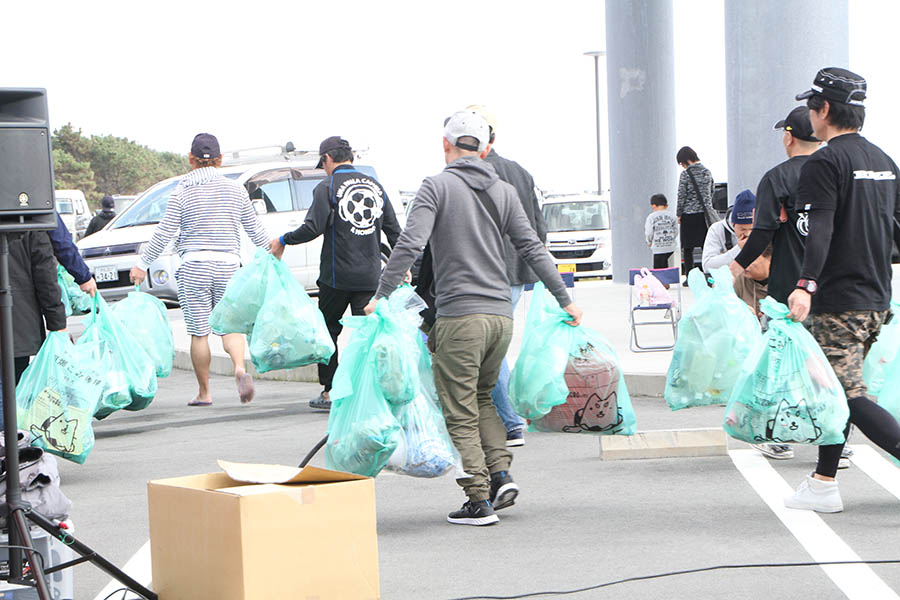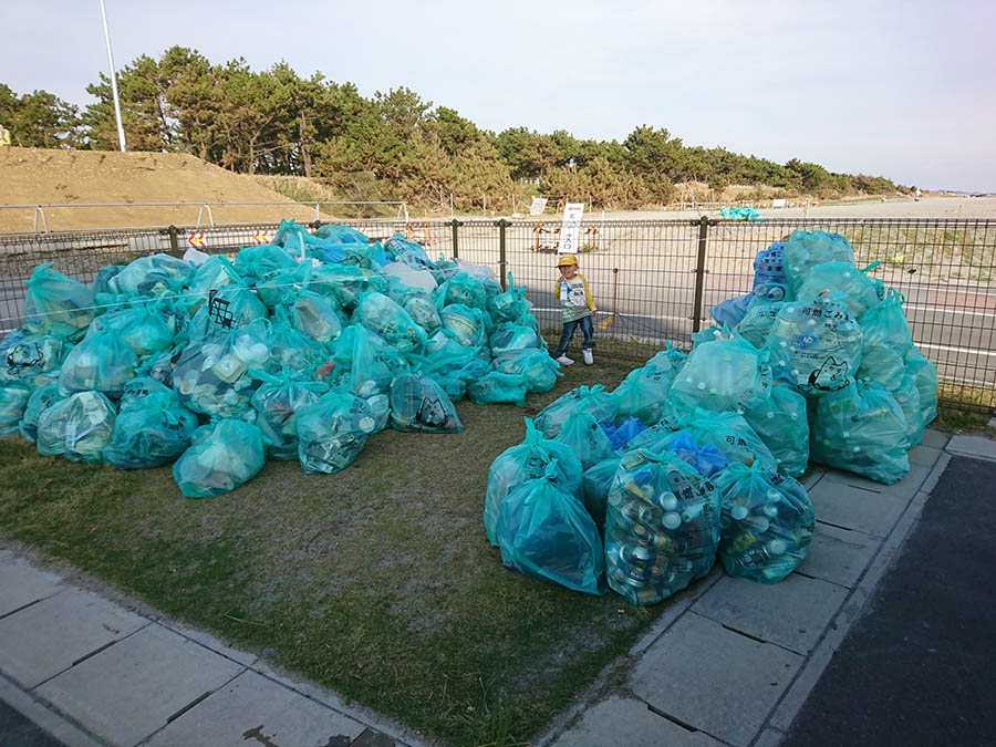 海岸清掃活動は今回も参加者の皆様のご協力により 軽トラック4台分ほどのゴミを回収することができました。 集まったゴミは、 |