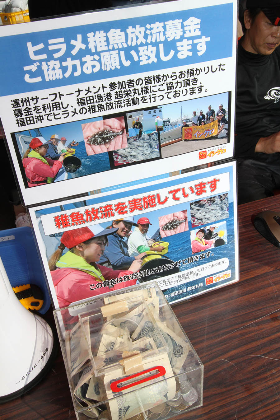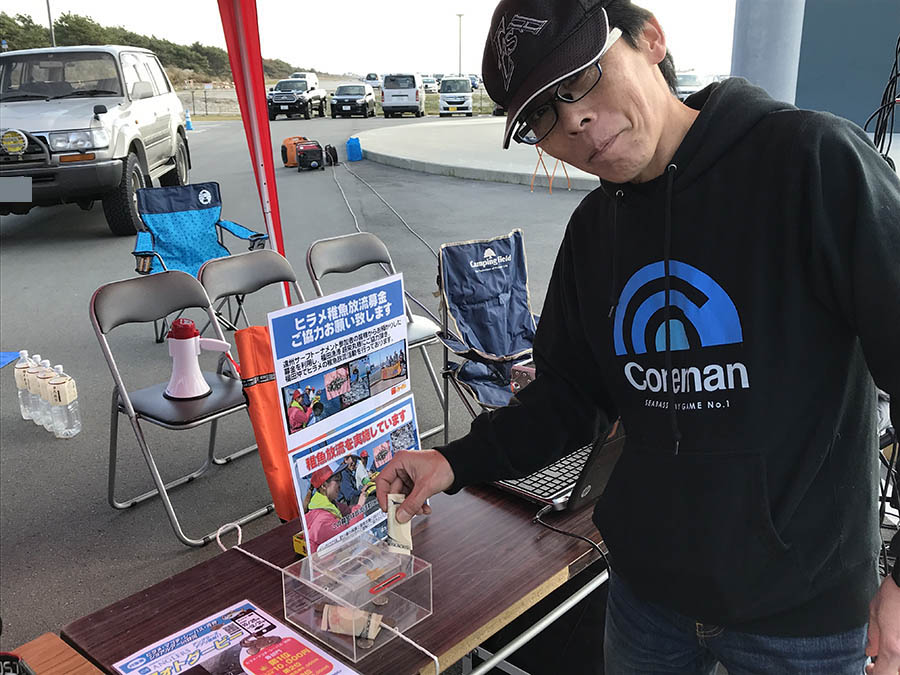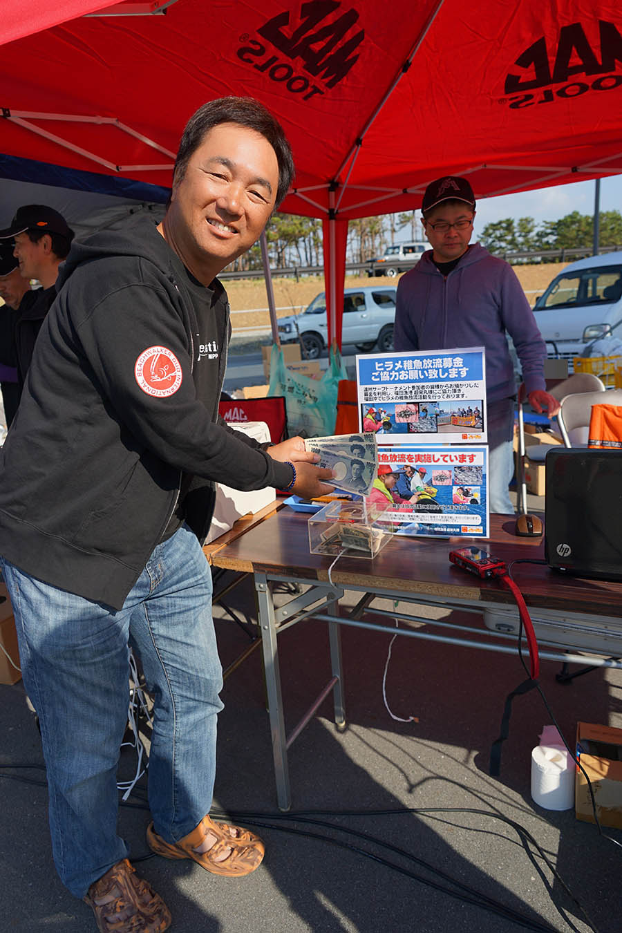 毎回行っているヒラメ稚魚放流募金も、今回も沢山の参加者や見学者様からの協力をいただくことが出来、ブース出展メーカー様にも、出展料の代わりとして、各メーカー様よりお気持ちとしてヒラメ稚魚放流募金にご協力いていただき、ご協力いただけたことは本当にありがたく感謝いたします。