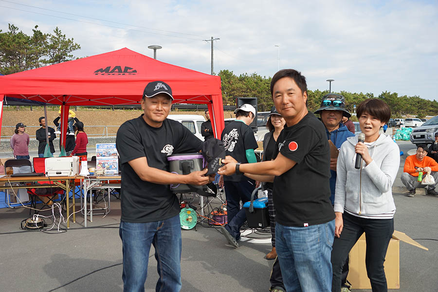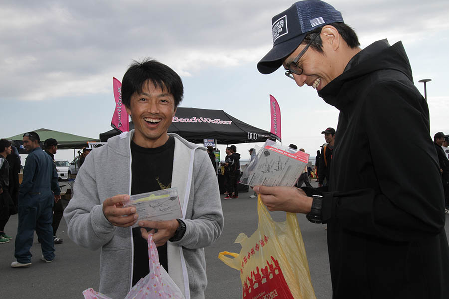 大会全体の雰囲気は、今大会から 開催時間を遅らすことや開会式無しの受付後に随時釣行開始などの変更もありましたが、長くこの大会に参加している参加者も多く、とても協力的な参加者が多い事もあるせいか、駐車場などの混乱も無く、受付前の列なども主催者側が伝える前に一列に並び順番を待っているなど、主催者側がビックリする内容も各所で多く見受けることが出来ました。会場内では参加者同士の交流やブースでの各社担当者様との交流などで、沢山の笑顔が見れる大会で、とても良い雰囲気で開催することが出来たと思っています。